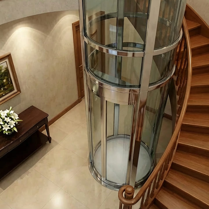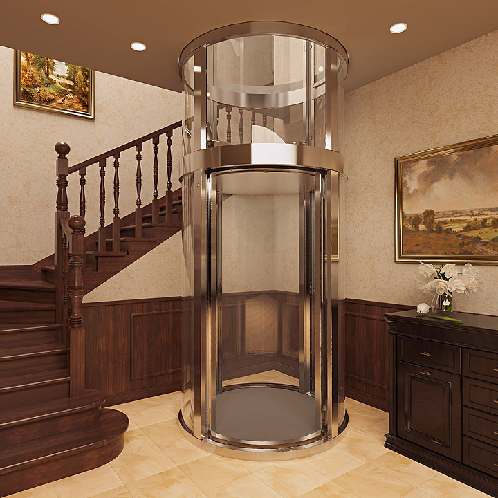 Панорамный шаттл диаметром 1200 мм на 2 этажа, установлен внутри лестничного марша.